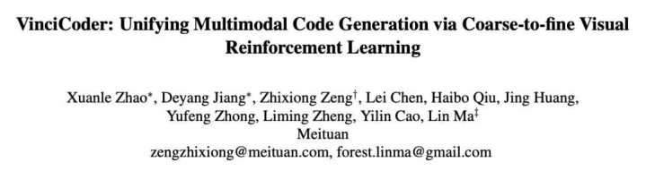 论文标题:VinciCoder: Unifying Multimodal Code Generation via Coarse-to-fine Visual Reinforcement Learning